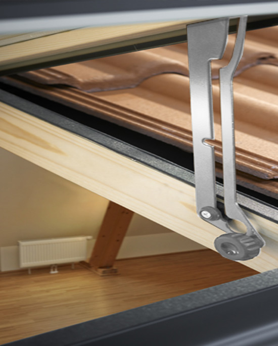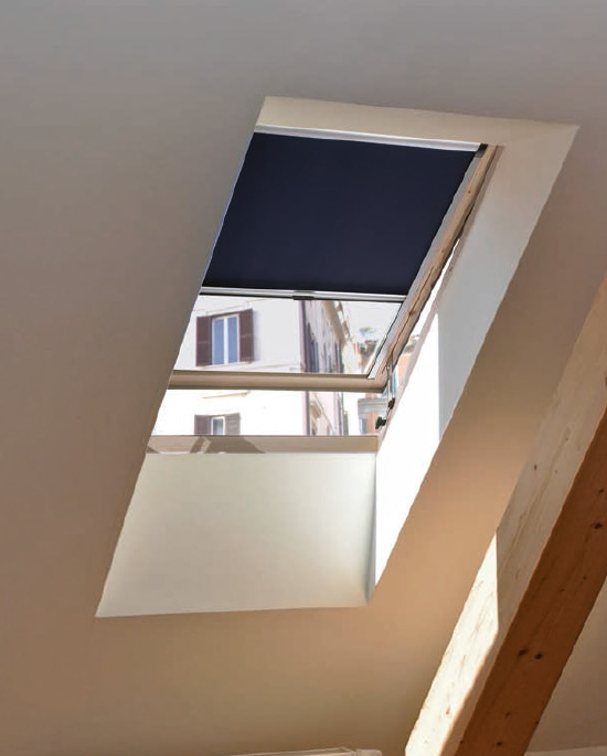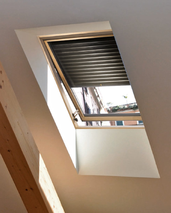 L'apertura a compasso di questo abbaino permette di aerare l'ambiente anche in presenza di leggera pioggia.