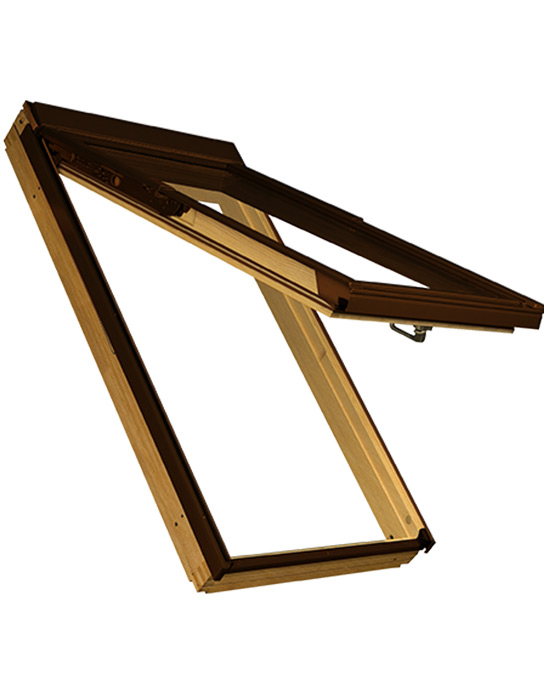 La scelta del tipo di apertura avviene grazie ad un pulsante facilmente accessibile. In modalità vasistas permette un libero avvicinamento alla finestra aperta mentre la funzione a bilico, permettendo la rotazione del battente, rende agevole la pulizia del vetro esterno. Il nuovo sistema di cerniere rinforzato garantisce una piena stabilità del battente sia nella funzione vasistas che a bilico. Questa finestra da tetto é disponibile in legno nordico trattato con una base di impregnante antimuffa e anti-insetto o PVC.