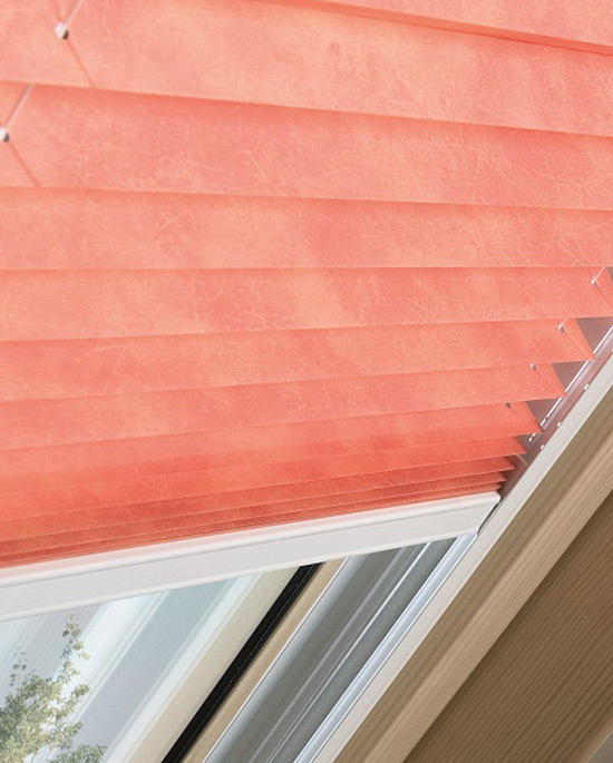 Ideale per ambienti a giornoTenda plissettata per abbaini molto elegante. Protegge contro il sole e arricchisce ogni interno. Grazie a questo accessorio é possibile apprezzare eleganti effetti di luce, l'armonia dei colori e l'arredamento dell'ambiente.